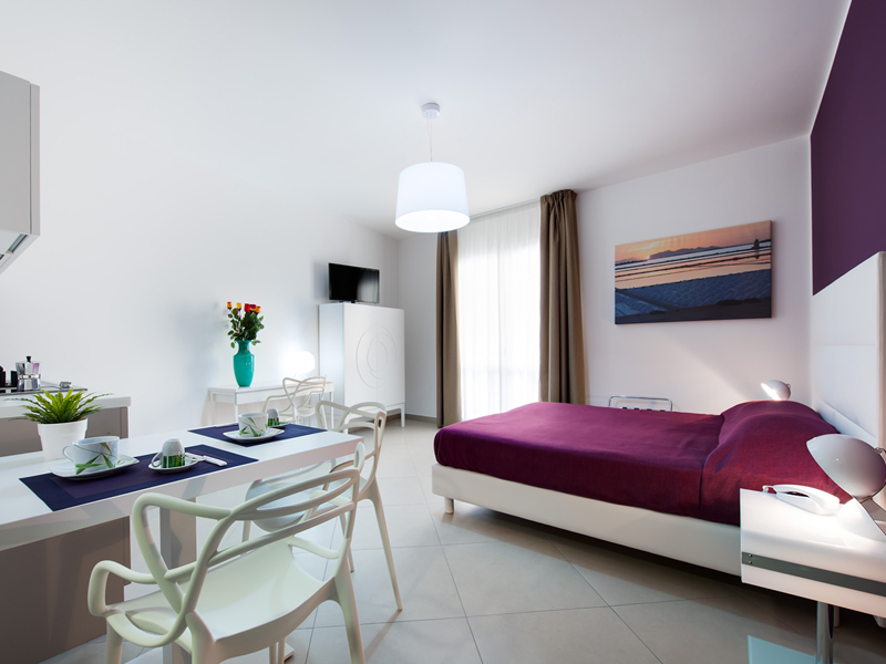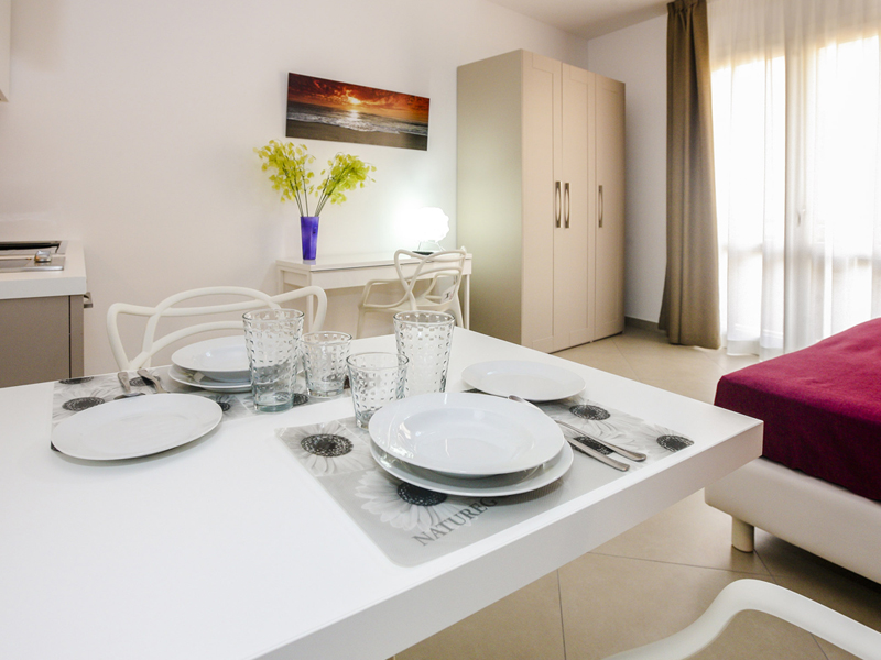 L’ambiente spazioso che comprende la zona notte ed un angolo cottura attrezzato e corredato per ogni necessità, è illuminato da un ampio balconcino anch’esso arredato per trascorrere da casa piacevoli momenti all’aria aperta. Il bagno è dotato di ampio box doccia.